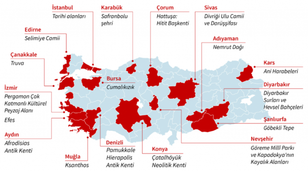 En son geçtiğimiz yıl Göbeklitepe’nin asıl listeye girmesi neticesinde UNESCO Dünya Miras Listesi’ne 18 adet varlığımızın alınması sağlanmıştı. Bu listede İzmir’den Efes ve Bergama yer alıyor. Türkiye’de İzmir dışında, aynı ilden birden fazla varlığın bulunmadığı listeye, Tarihi Kent Merkezi de dahil olduğunda toplamda 3 nokta yer almış olacak. Geçici Liste’de İzmir’den Birgi Tarihi Kenti ve Foça ve Çandarlı Kaleleri de bulunuyor.